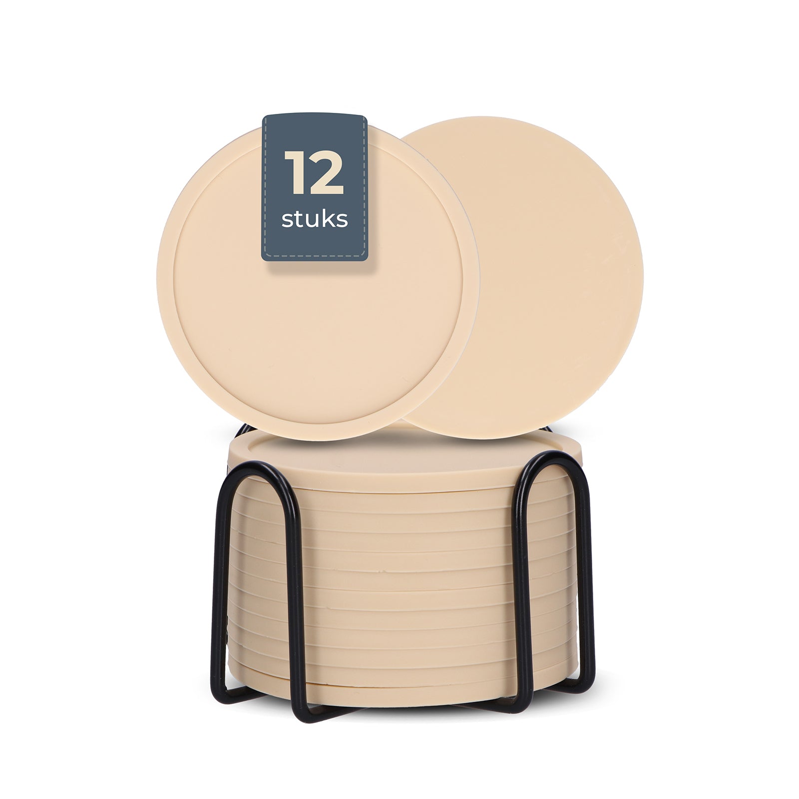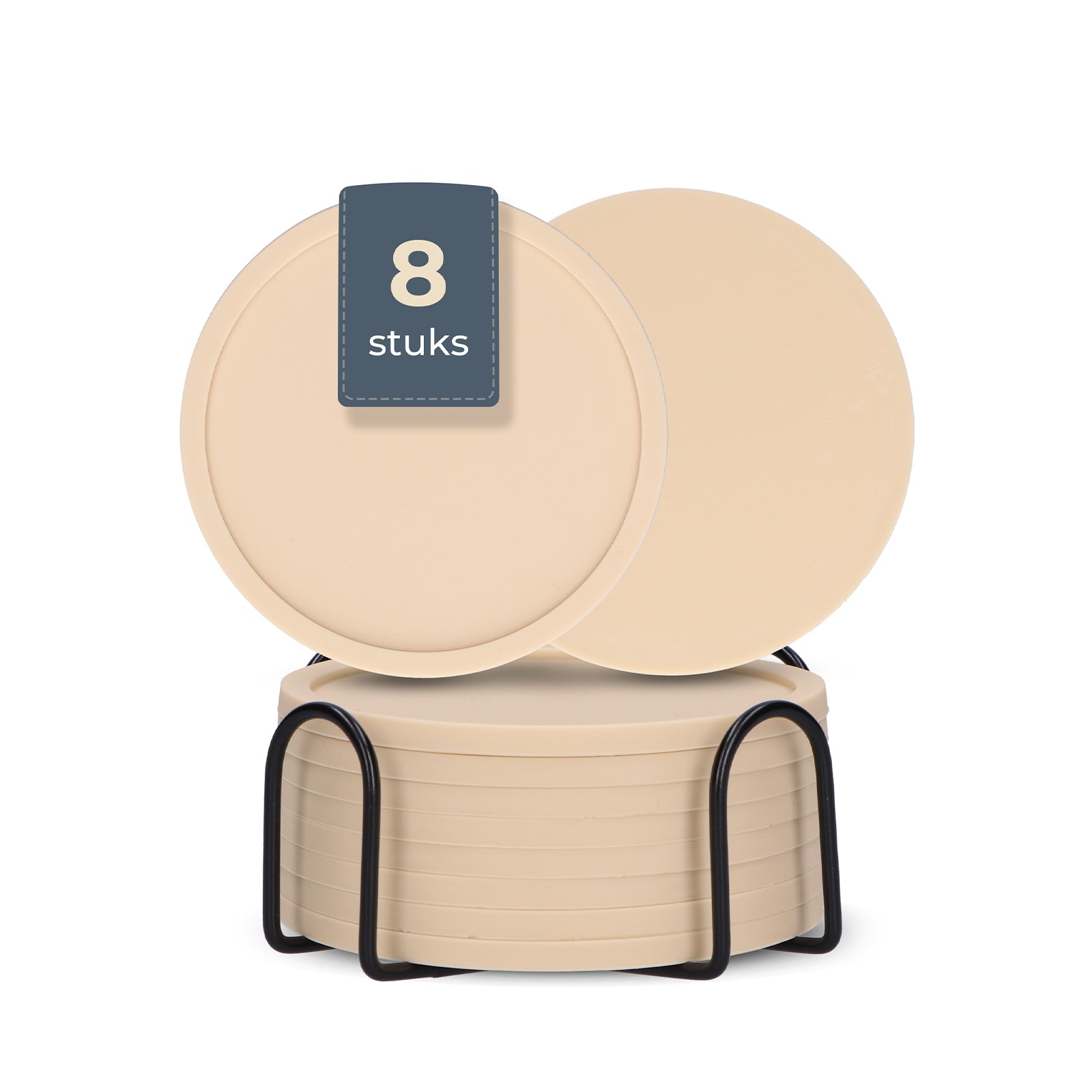 Deze onderzetters zijn gemaakt van siliconen en hebben een antislip oppervlak dat zorgt dat glazen en mokken stevig blijven staan. Het beige ontwerp is minimalistisch en past bij elke interieurstijl.