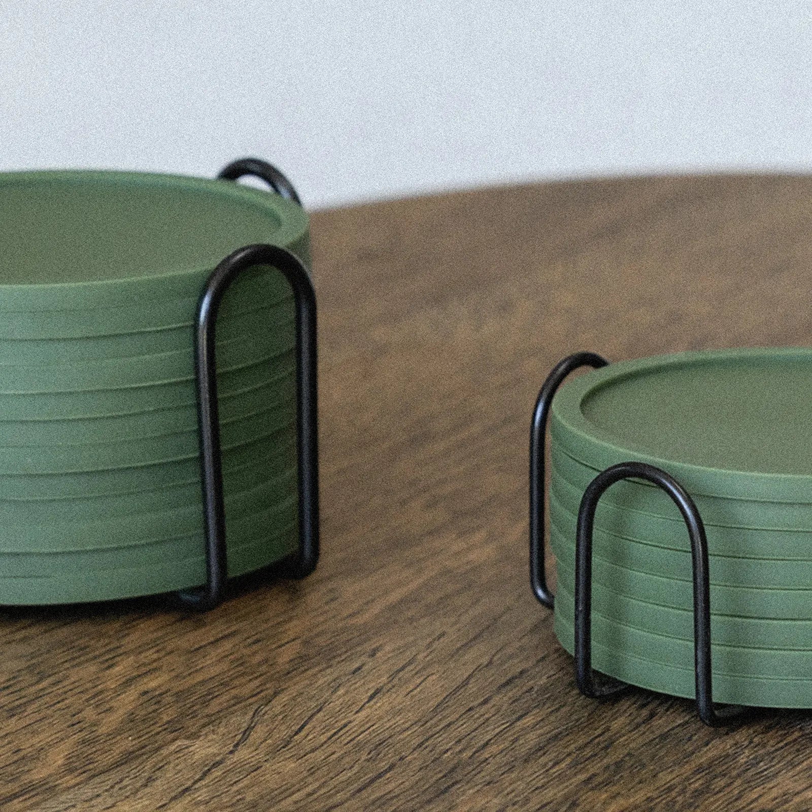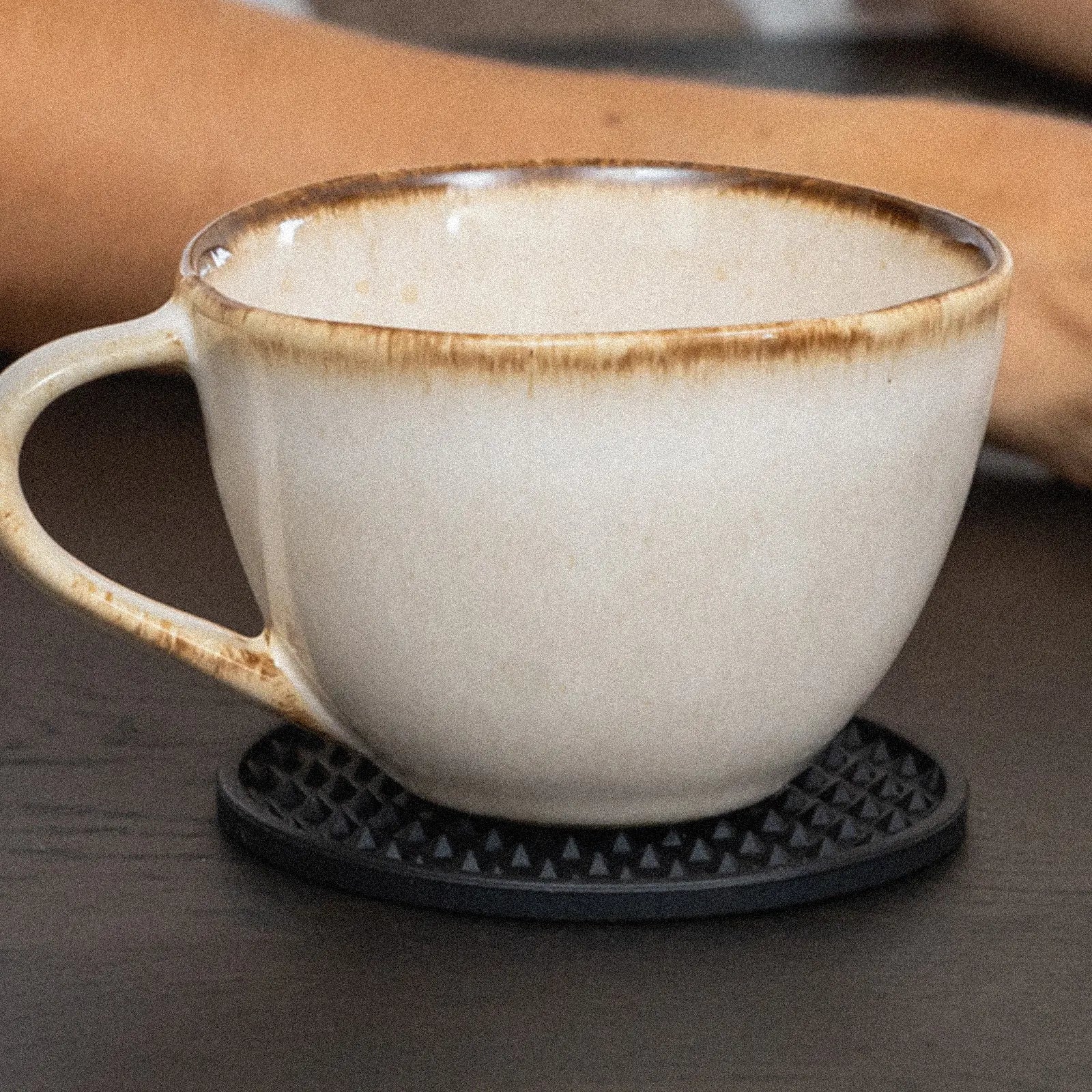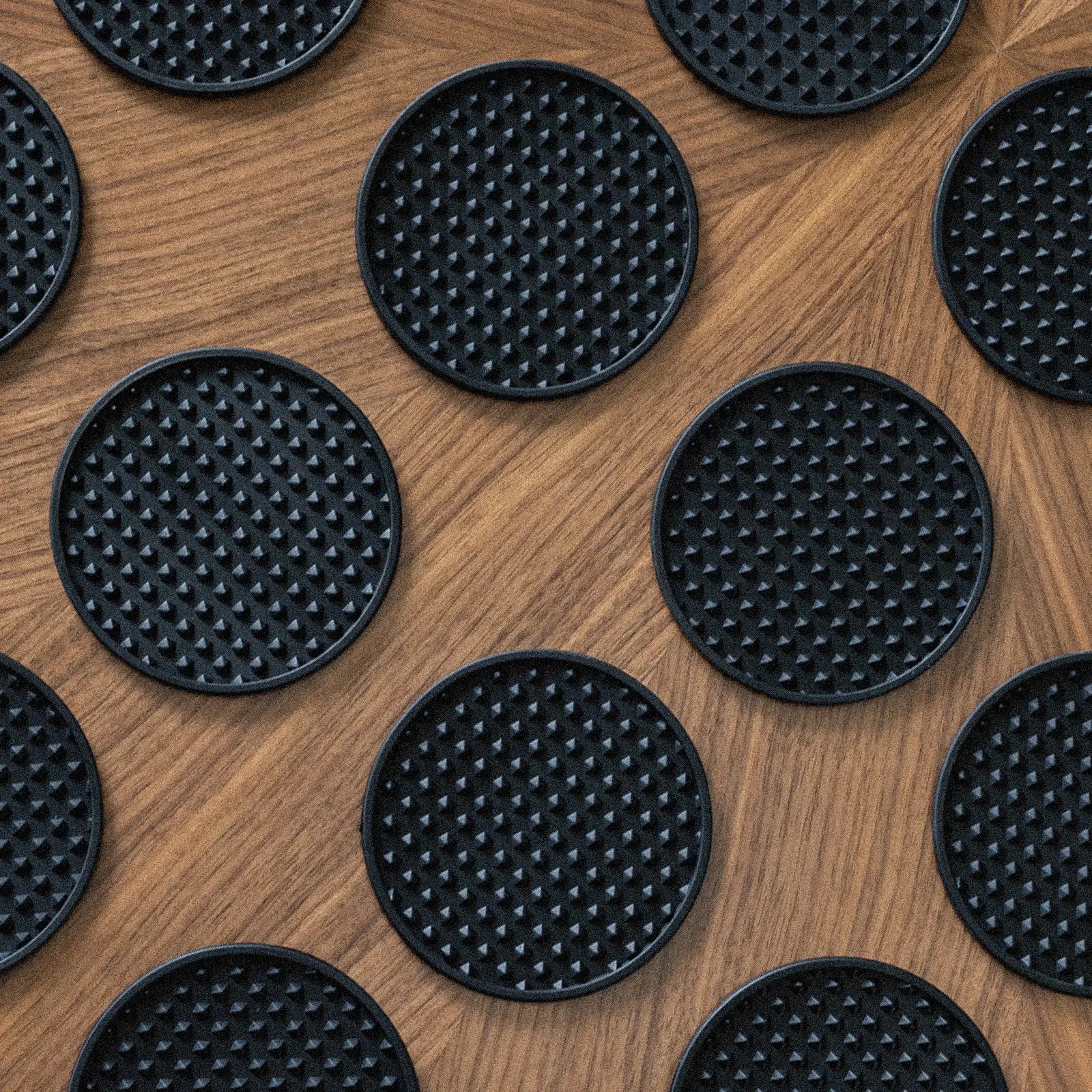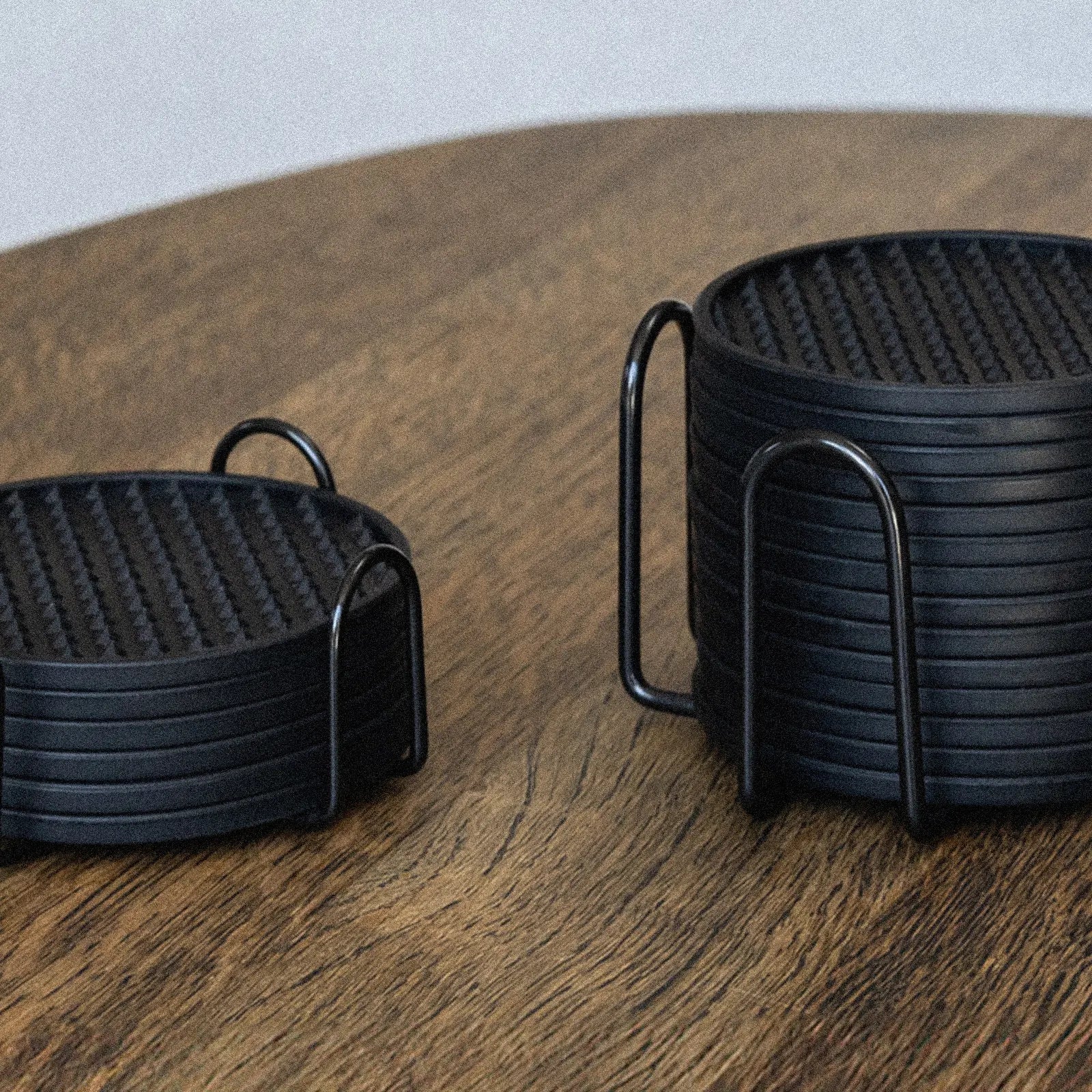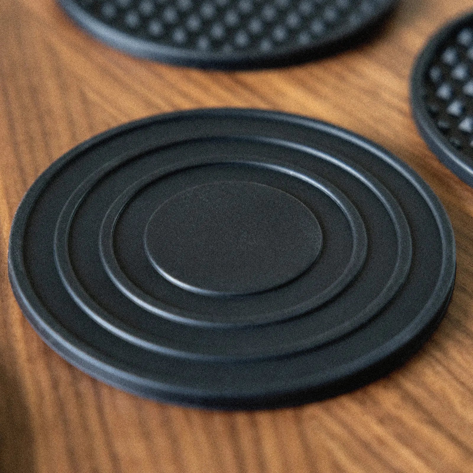 Deze onderzetters zijn gemaakt van siliconen en hebben een antislip oppervlak dat zorgt dat glazen en mokken stevig blijven staan. Het zwart - siliconen ontwerp is minimalistisch en past bij elke interieurstijl.