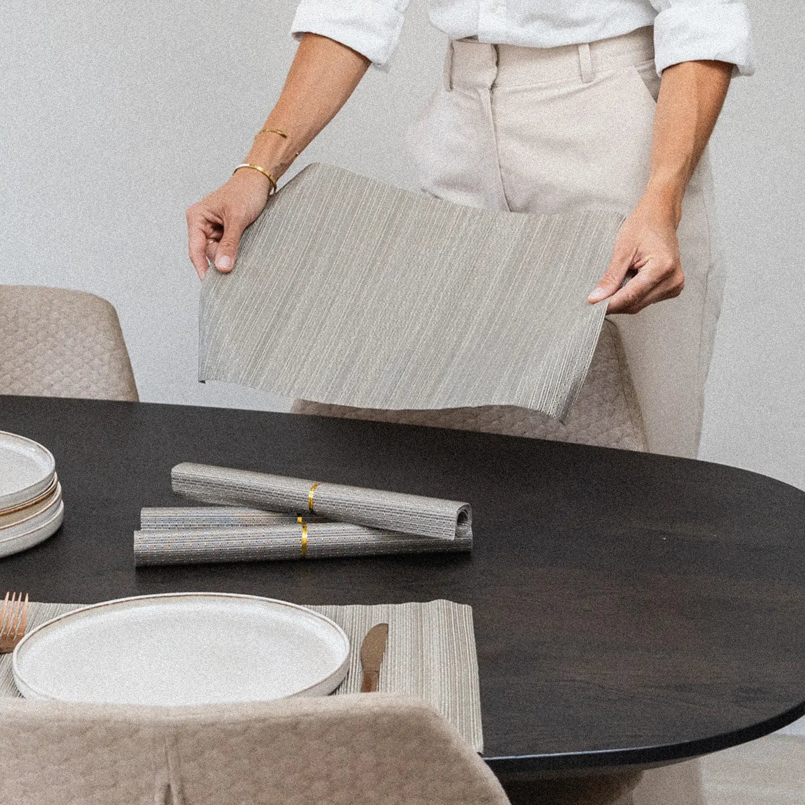 De placemats hebben een rechthoekig vorm van 45 x 30 cm en een strakke afwerking. Perfect voor zowel informele als formele diners.